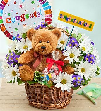 Our Lotsa Love teddy bear wears a checkered brown bowtie to match his cream-colored plush fur. Weve bundled a delightful bouquet of vibrant flowers with a festive balloon to congratulate the new mom and paired it with our. EXCLUSIVE Our amazing gift includes 3 fabulous gifts in one.