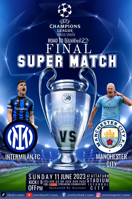 Manchester City Vs Intermilan Match Football Vorlage Postermywall